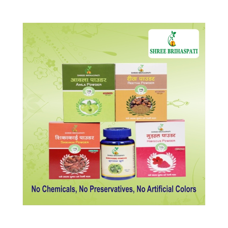 🌿 Herbal Hair Care Pack of 5: Includes Amla, Reetha, Shikakai, Hibiscus & Bhringraj powders.